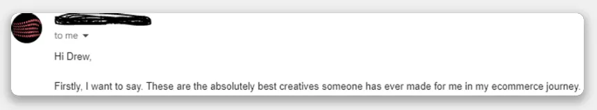 Alan said: "These are absolutely the best creatives someone has ever made for me in my ecommerce journey."